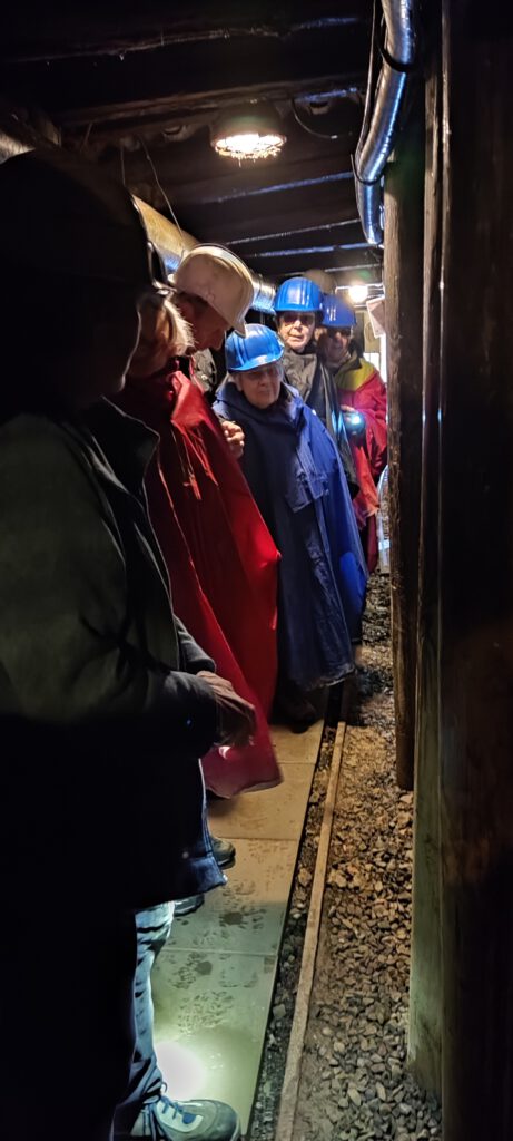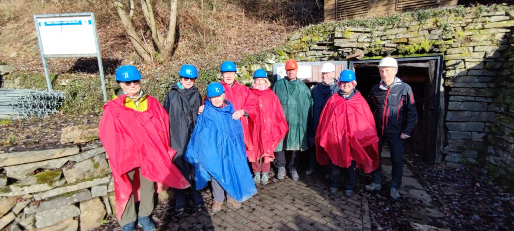 Besichtigung Grube Silberhardt — Windeck-Öttershagen Am 17. Januar 2026 stand ein Besuch der Grube Silberhardt an. Eine Grube mit einem für Besucher erschlossenen Schacht welcher 300 Meter tief in den Berg dringt. Es ist nur ein kleiner Teil der gesamten, aber nicht mehr zugänglichen, Schächte. Man kann schon sagen, dass der Berg durch Jahrhunderte Bergbau in vielen Etagen (Sohlen) wie ein Schweizer Käse durchlöchert wurde. Nachdem die Gruppe der Wanderfreunde-Rhein-Sieg aus Troisdorf die Grube erreicht hatte, wurde diese in zwei kleinere Gruppen aufgeteilt damit im engen Schacht jeder die Erläuterungen verstehen konnte. Als erstes wurde der Ausstellungsbereich, in welchem viele Utensilien und Werkzeuge ausgestellt sind, besucht und auch die vielen großartigen Mineralien bestaunt. Zur Einfahrt in die feuchte, enge und teilweise niedrige Grube musste erst ein Umhang und ein Schutzhelm angezogen werden. Nun hinein in die Grube mit dem Führer und staunen unter welchen Bedingungen die Bergarbeiter in früheren Jahren arbeiten mussten und wieviel sie dennoch erreicht hatten. Die Abstützungen des Stollens, die vielen, kleinen Stalaktiten welche durch eindringendes Wasser entstanden, die alten, einfache Werkzeuge, die engen Quergänge, die schweren Loren, das kühle und feuchte Klima. Auch den Abortkübel auf welchem zum besseren sitzen ein Balken (Donnerbalken) quer gelegt wurde. All dies lies erahnen wie schwer die Arbeit im Stollen war und warum die Lebenserwartung der damaligen Arbeiter nur 35 Jahre betrug. Weiter ging es zum Bergbauweg welcher einige Ruinen ehemaliger Bergbaugebäude und ein Nachbau eines Rennschmelzofens für die Eisengewinnung zeigt. Rennschmelzöfen wurden schon vor 3000 Jahren zur Eisengewinnung benutzt. Sie wurden mit Holzkohle beheizt welche daneben hergestellt wurde. Ein Köhlermeiler zur Holzkohleerzeugung steht nebenan. Nach dem bestaunen dieser Beispiele und deren Handhabung ging es mit Bus und Bahn zurück nach Troisdorf.